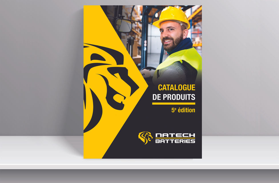 Mise en pages et design de catalogue, publicités, design de kiosque et bannières, articles promotionnels etc. Client : Batterie Natech par l'entremise de Stratégie B2B